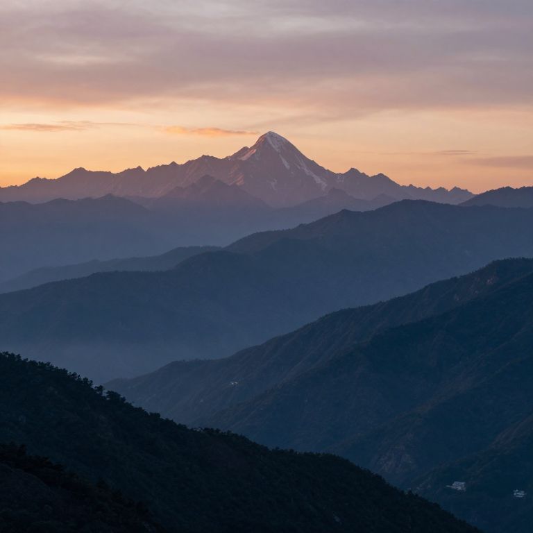 Silent mountains cradle the whispers of dawn, their peaks bathed in hues of hope and mystery, as if guarding ancient secrets while the world below dreams of endless horizons.