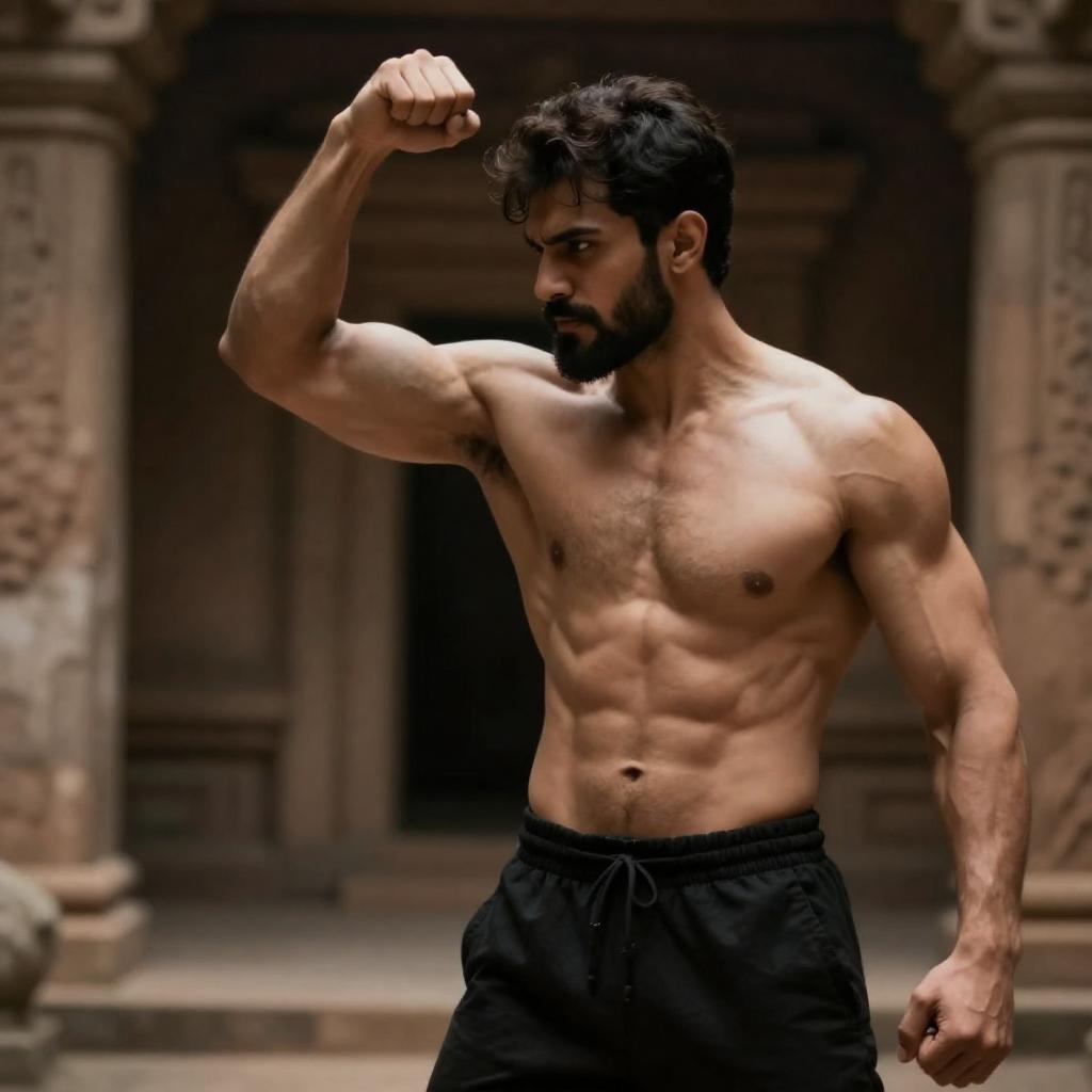 Photograph of a bearded man with a muscular build and dark brown shirt, squatting and holding a smoking bowl. A woman with long dark hair, wearing a brown vest over a long-sleeve shirt, pours liquid into the bowl from a small cup. Industrial, smoky background with metal structures and pipes. Smoke rises from the bowl. Both focused on the bowl. Woman's right hand pours, man's left hand holds bowl.
