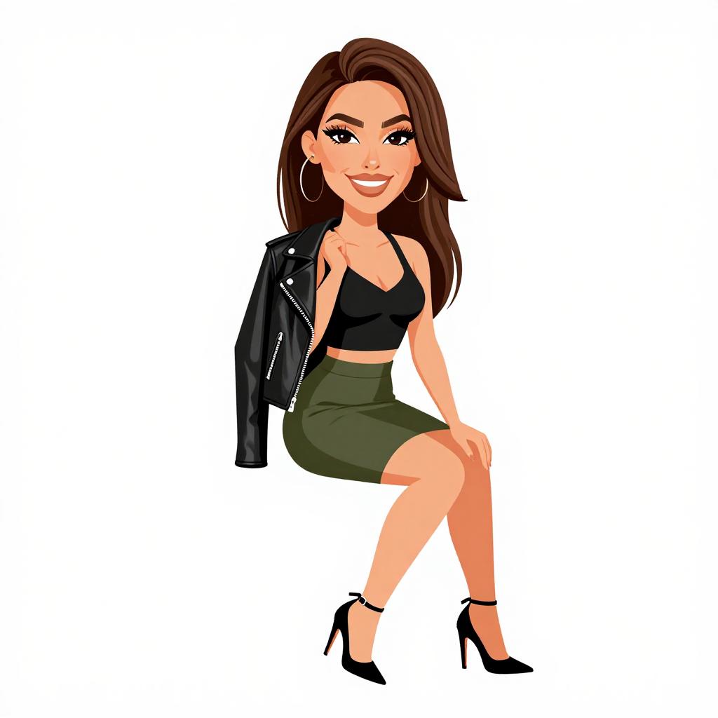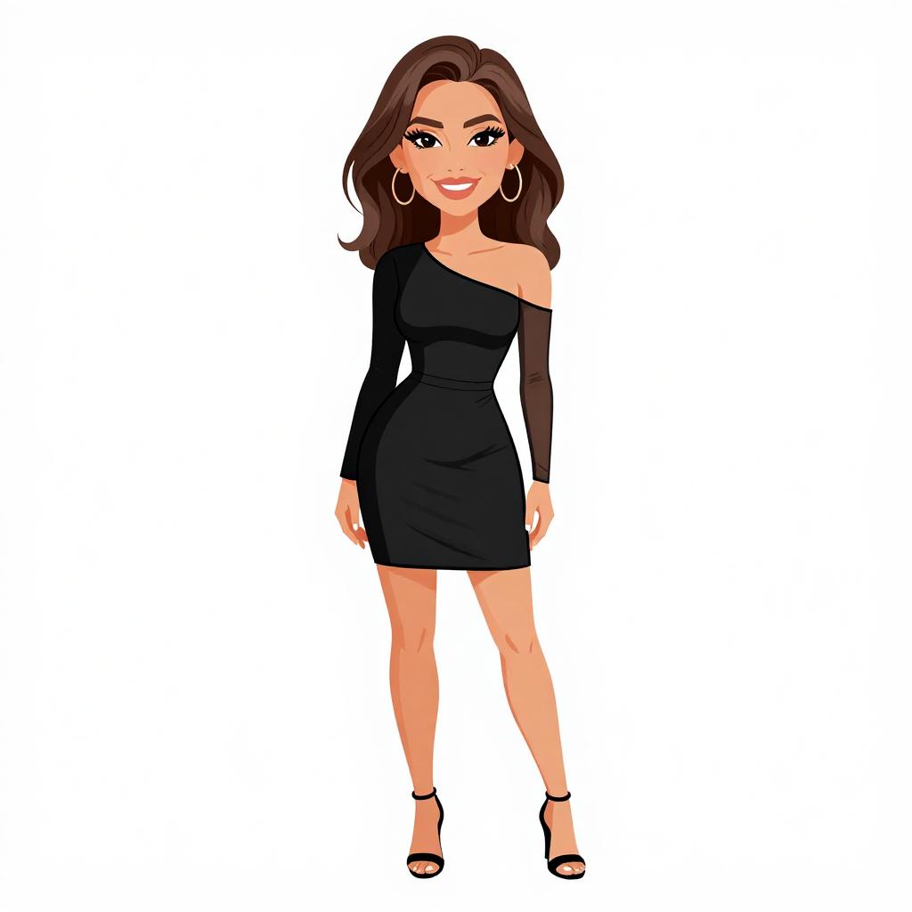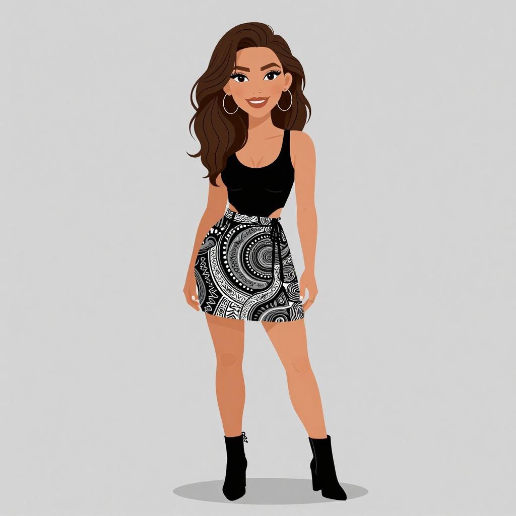 Woman with pretty face and pretty hair. smiling Woman, playful and trendy, leopard print wrap dress with a V-neckline, short flounce sleeves, tie waist, ruffled hem, mini length, paired with simple black strappy heels, studio background. --sref 1467