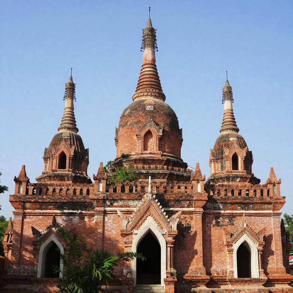 Ancient Red-Brick Pagodas Under Blue Sky