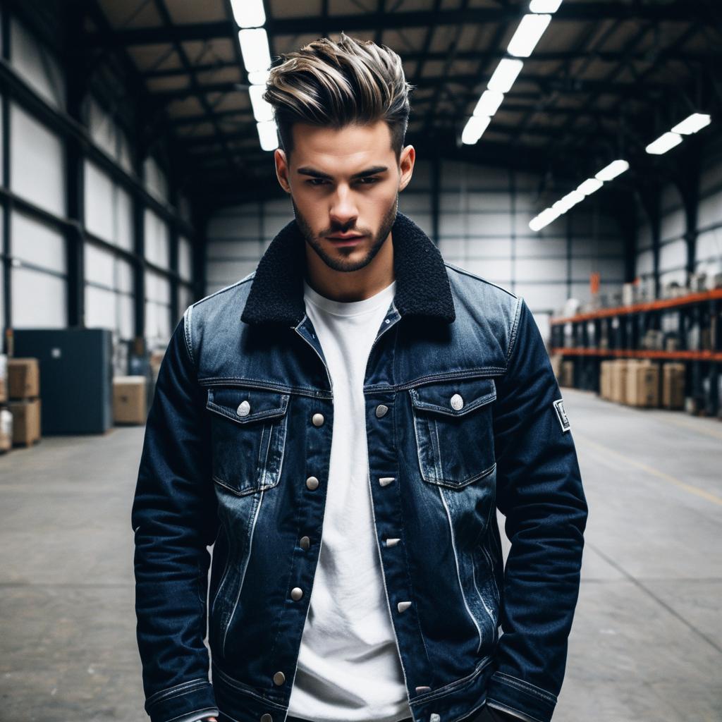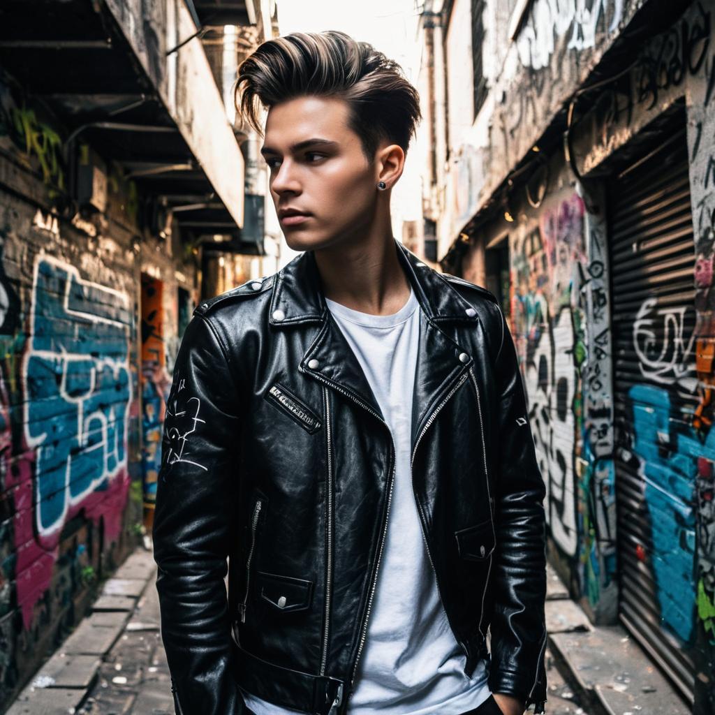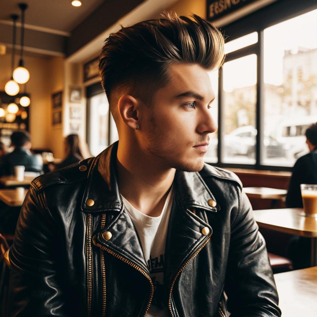 Young Man with Temple Fade Hairstyle and Leather Jacket
