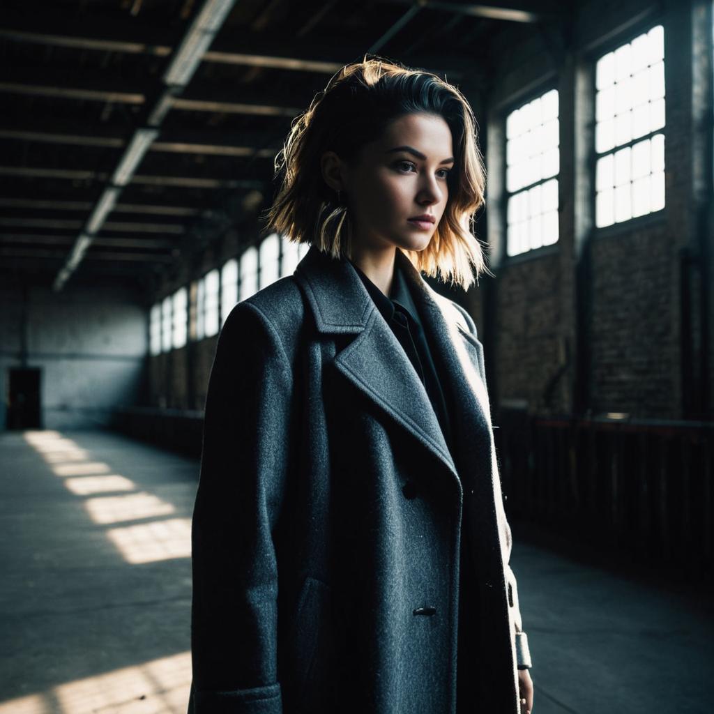 Temple Fade hairstyle on young man, wearing sleek leather jacket, in outdoor terrace, captured in fashion editorial style with warm golden hour glow.