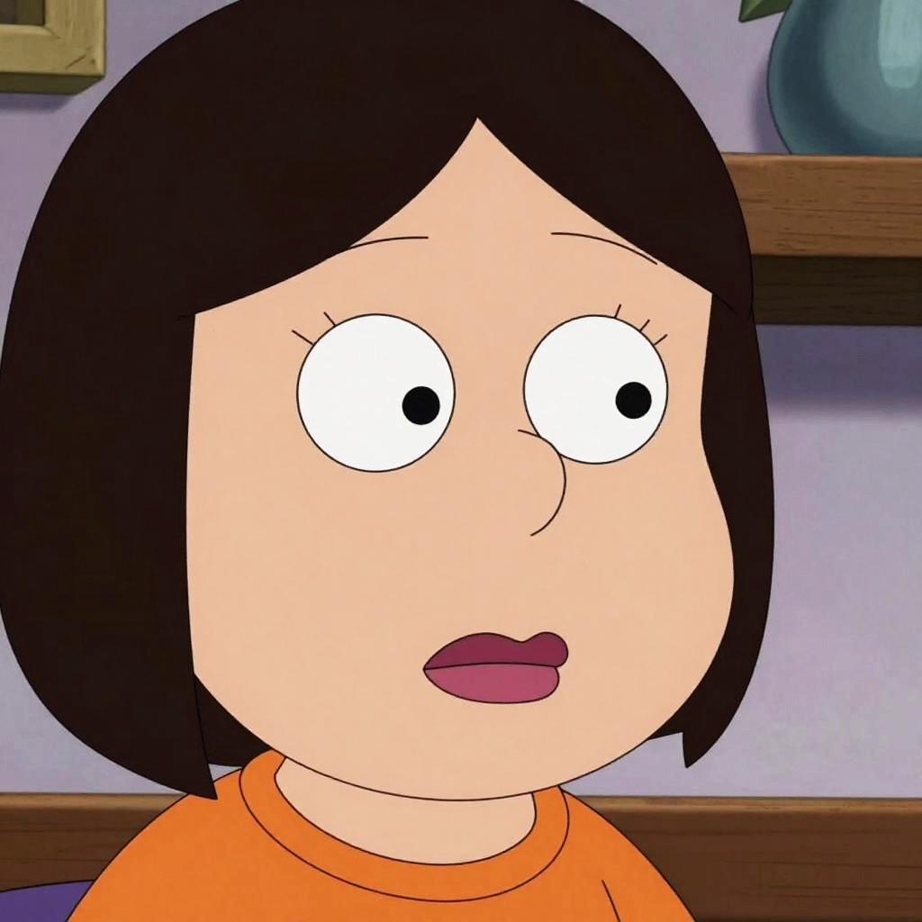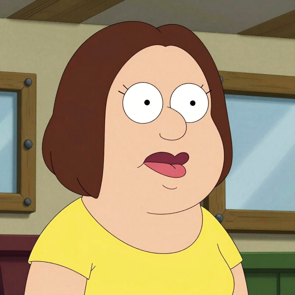 Lois Griffin nose in an exaggerated comic style, bold outlines, bright color palette, humorous and whimsical expression, set against a typical Family Guy background