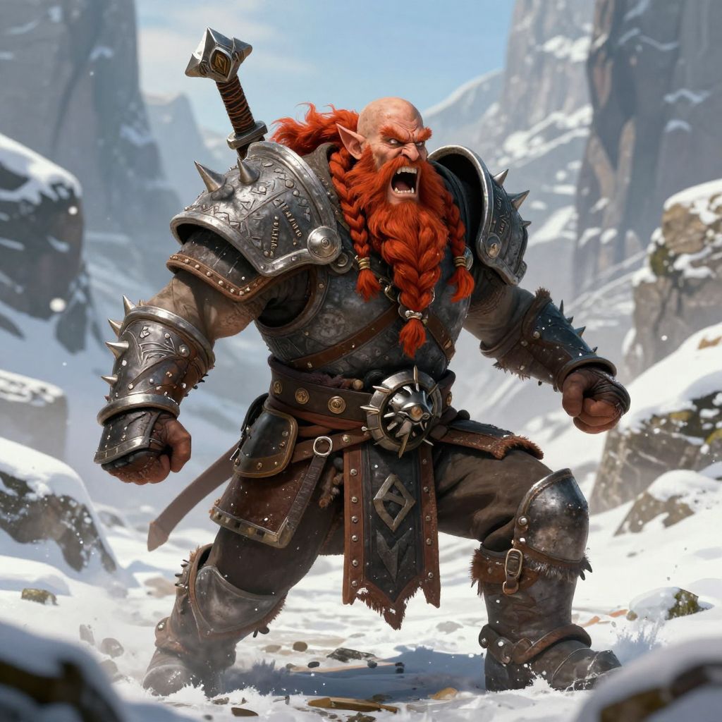 Line art trinket depicting a middle earth, Barbarian Letting out a bloodcurdling roar as they charge into battle, wielding a massive battle axe, Maverick, Tall, Obese, Triangular Face, Fair Skin, Chestnut Hair, ruby Eyes, Short Nose, Thin Lips, Prominent Chin, Ducktail, Buzz Cut, Quiff, A frozen tundra, with icy peaks and frozen lakes stretching as far as the eye can see, Tolkien Eug├иne Giraud, natural, shimmering, vibrant, gothic, rpg, 1400ad, ultra detailed, detailed, immersive, reminiscent of high fantasy RPG games, HD, masterpiece, best quality, hyper detailed, super realistic, perfect face, perfect hands, award-winning, professional, breathtaking, linquiverapeculiar Cragraw weatherfuturistic style . sleek, modern, ultramodern, high tech