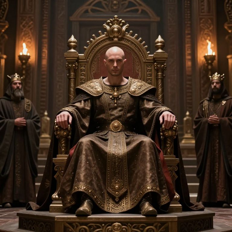 Bald King on Throne in Temple