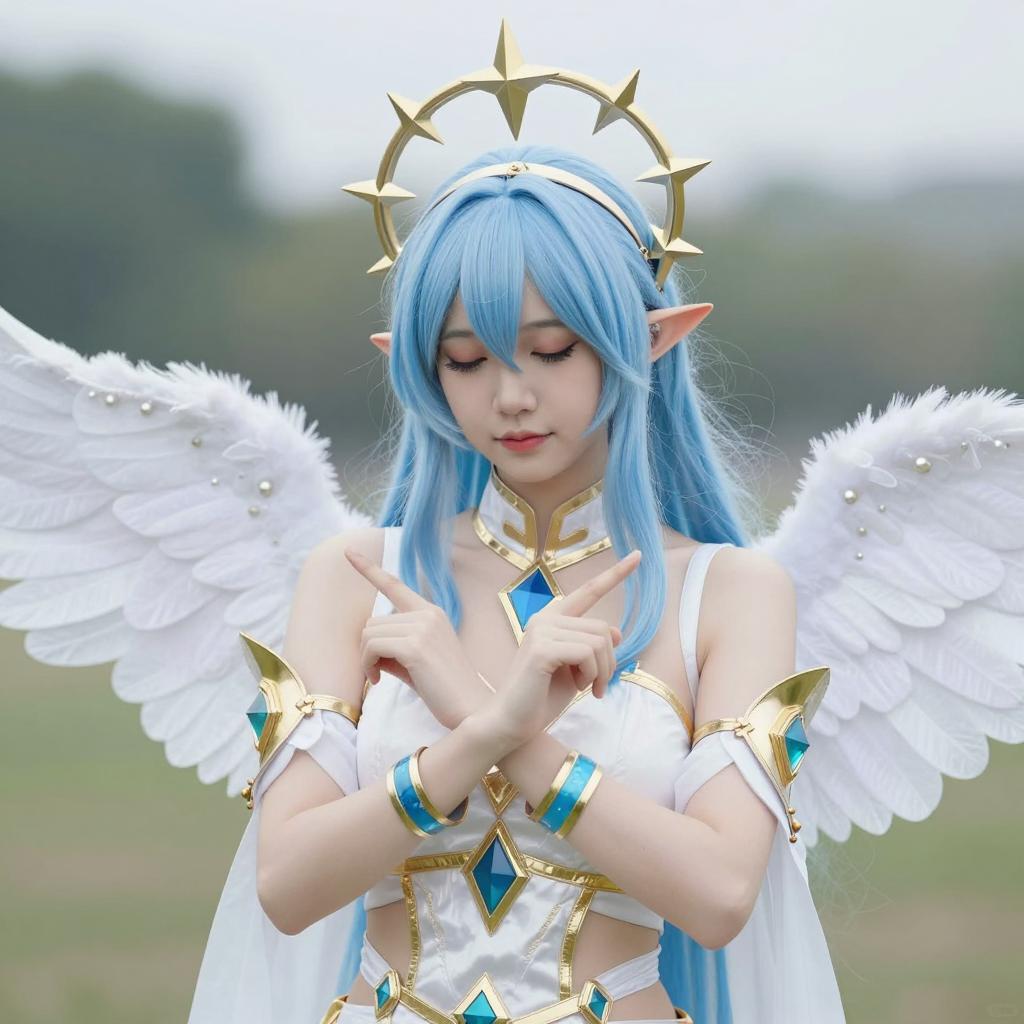 Angel Cosplay with White Feathered Wings