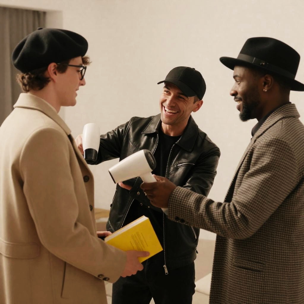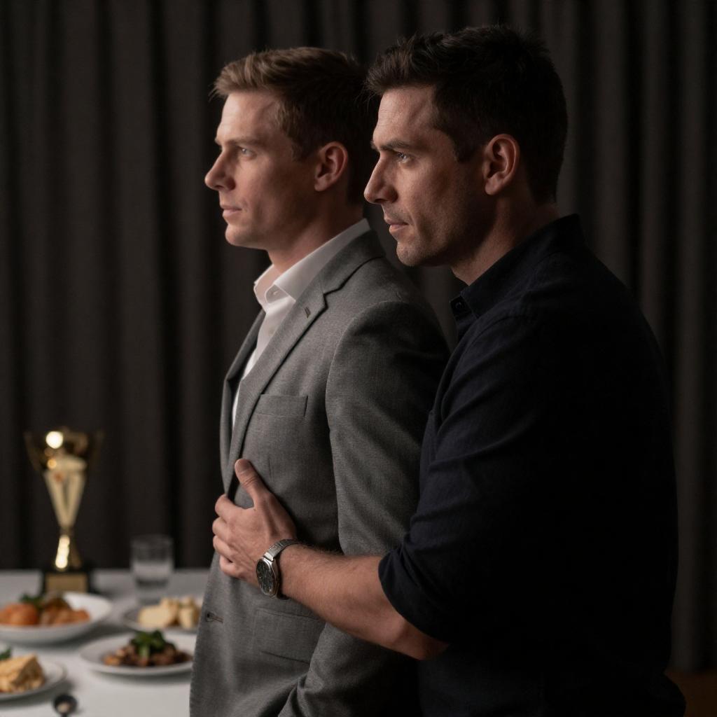 Group of Men Hugging Indoors