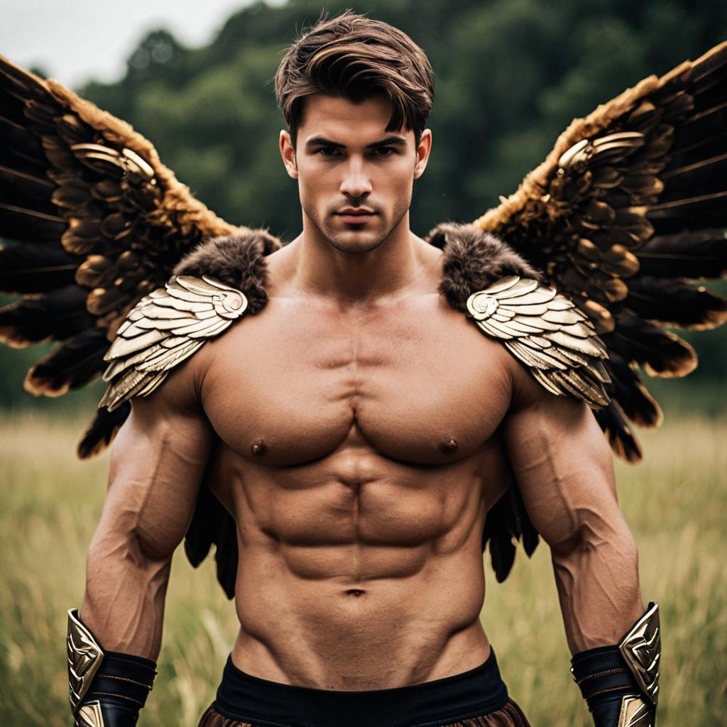 Muscular Man in Angel Costume with Wings and Halo