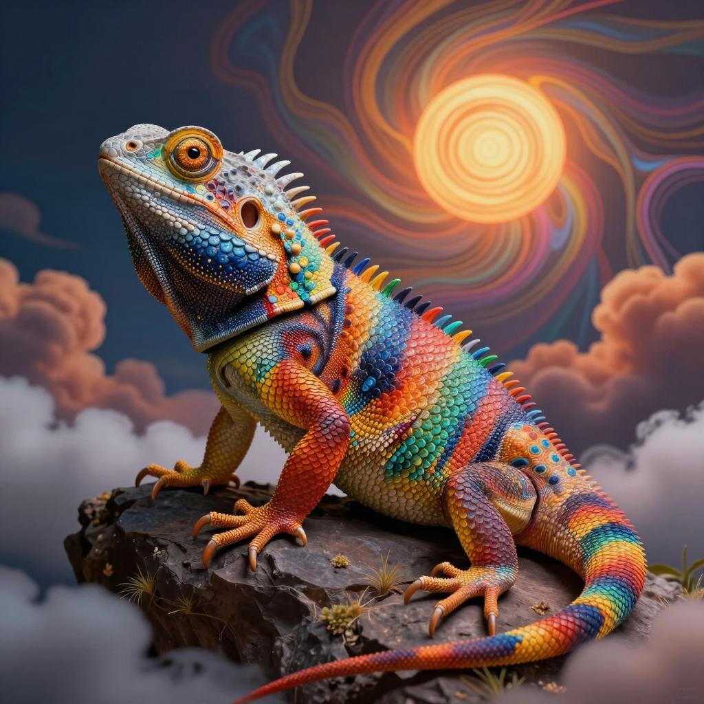 Futuristic Neon Cyberpunk Chameleon