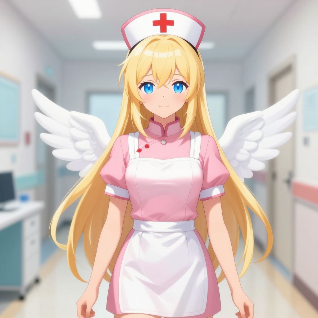Digital illustration of Admiral Hipper from Azur Lane featuring a young anime-style female character with long blonde hair accented with green, green eyes, ahoge, and a mole under her eye. She wears a red and white military-inspired uniform with an Iron Cross symbol on the chest and a nurse-like headgear. The style is vibrant and detailed, emphasizing her collarbone and small breasts.