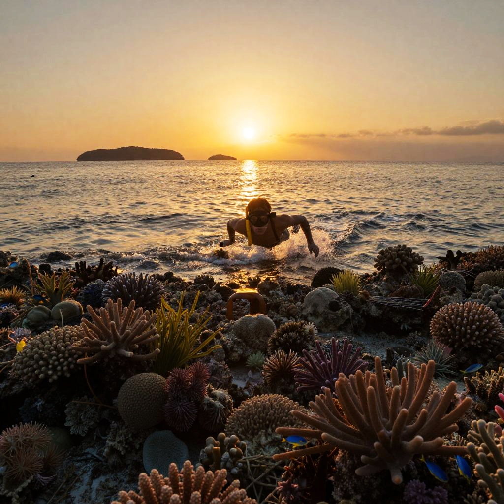 Sunset Snorkeling Over Coral Reefs