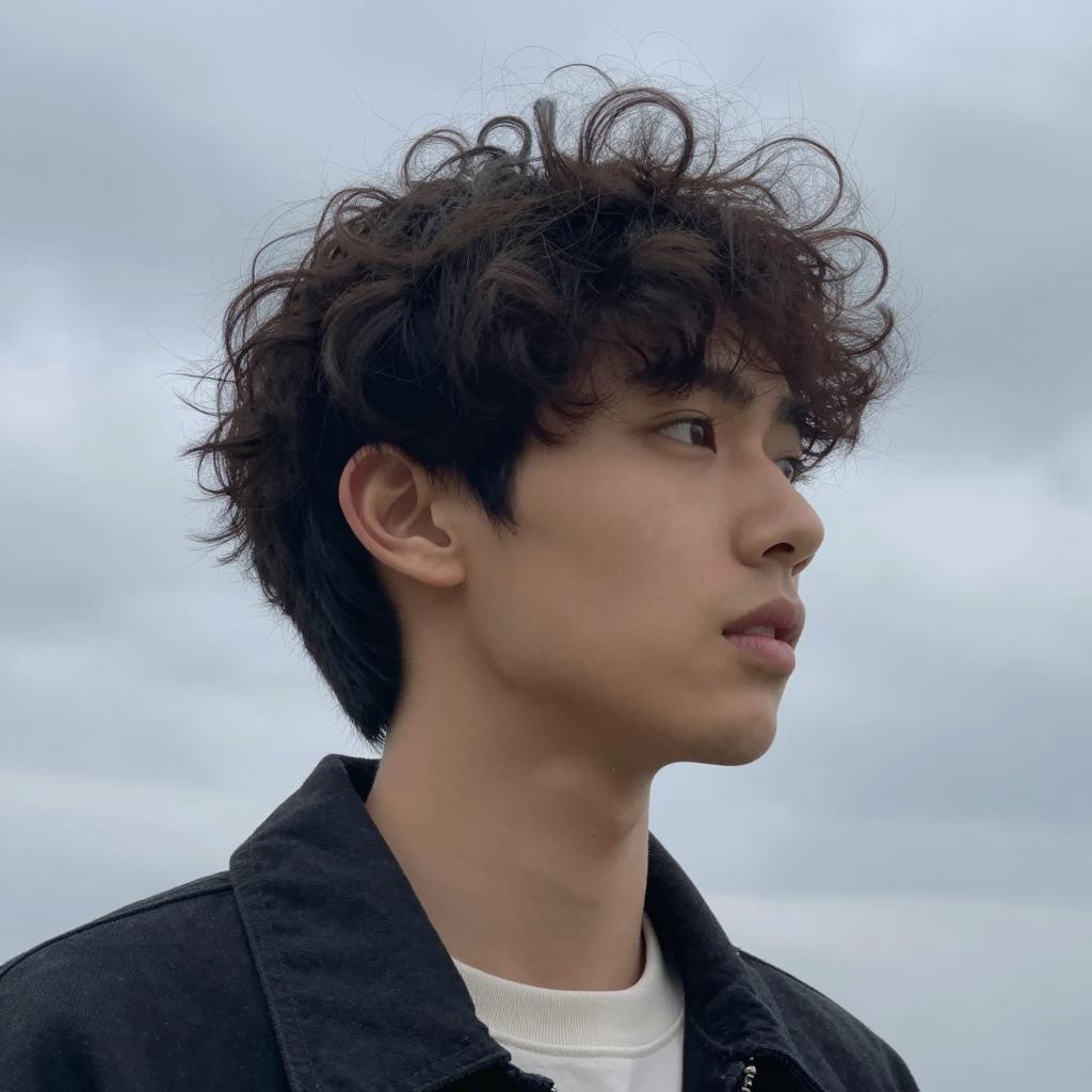Photograph of a young man with short dark hair, intense gaze, smoking a cigarette. Green smoke curls from the cigarette. He wears a dark suit jacket over a white shirt. Dimly lit background with shadows and blurred metal structure.