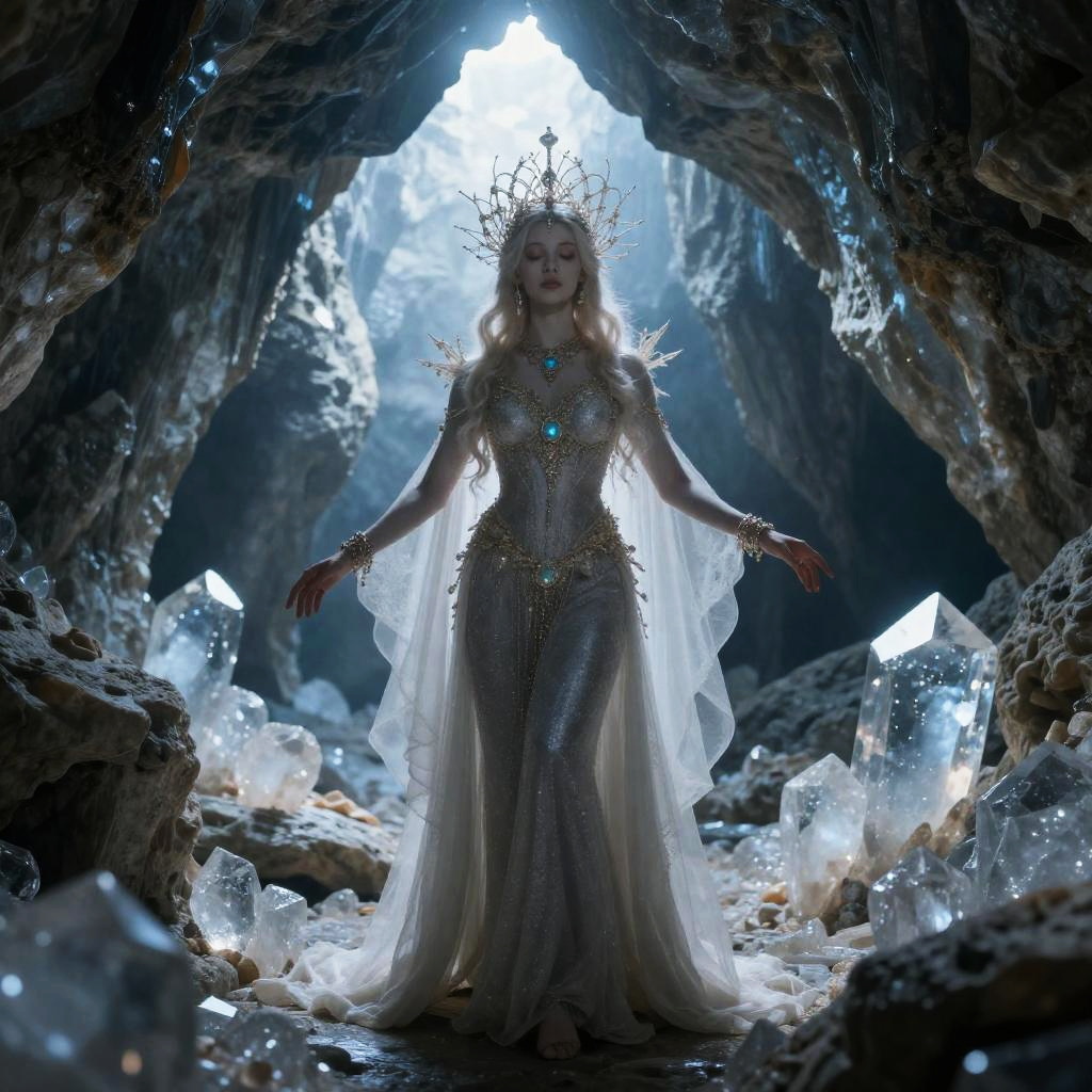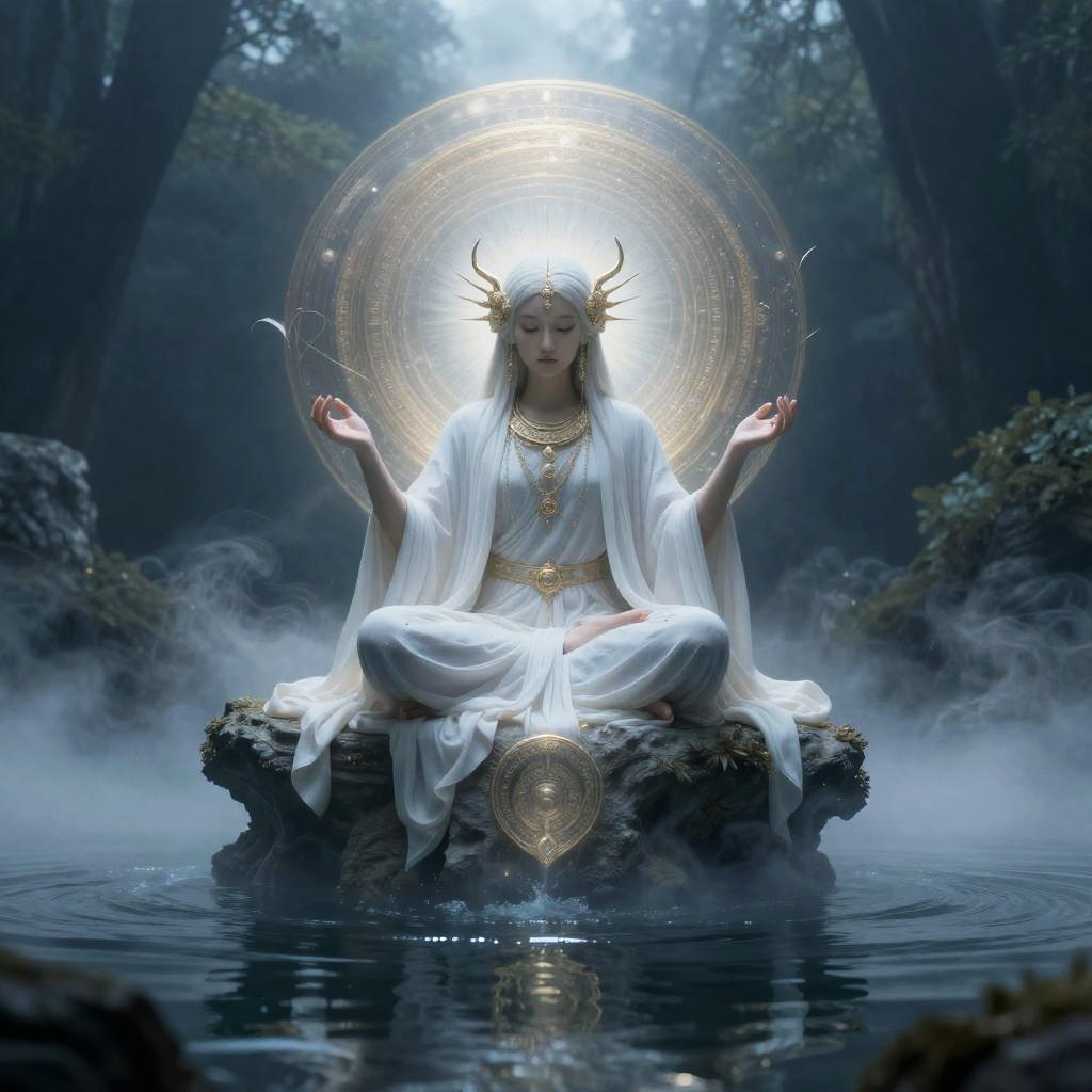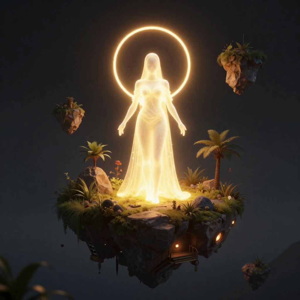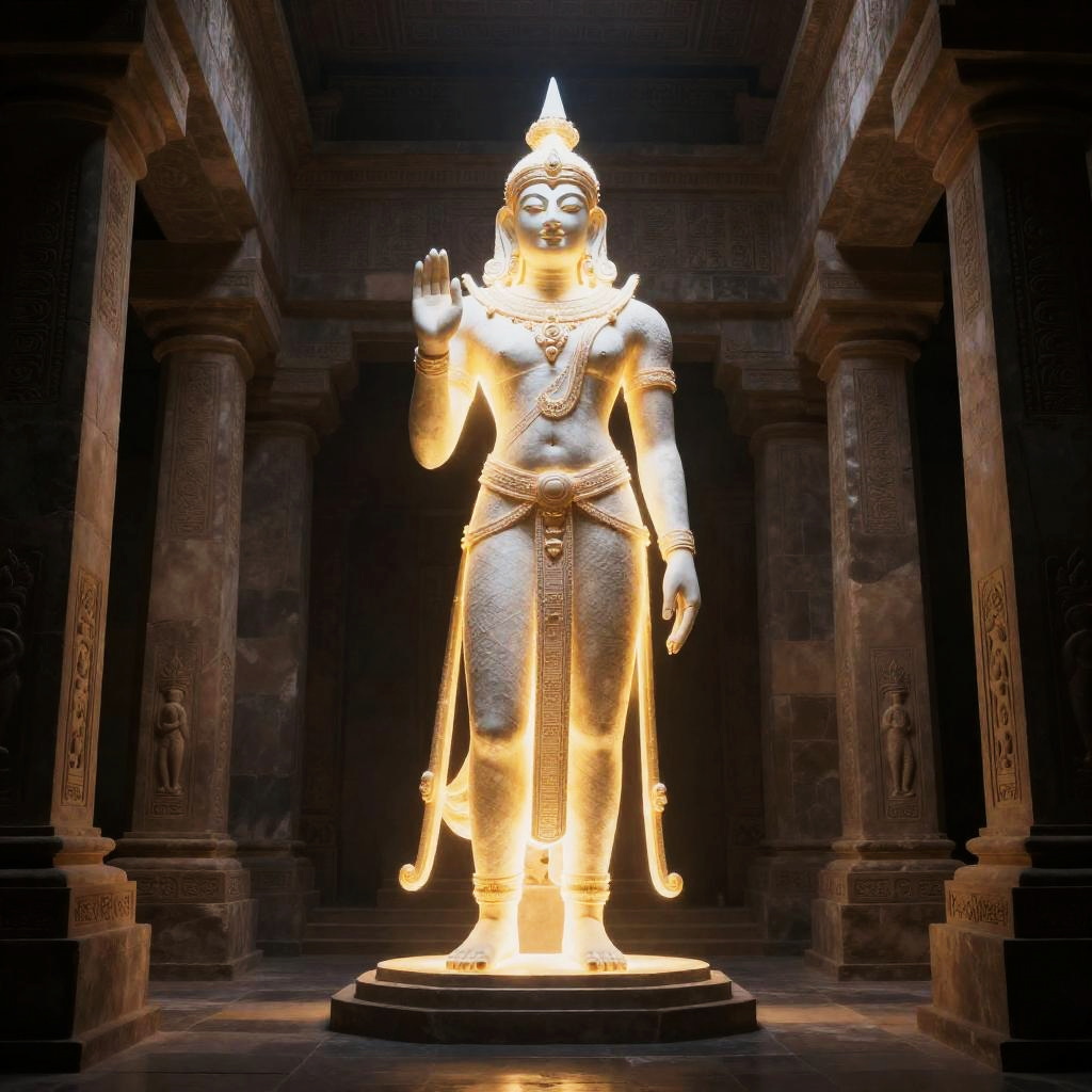 Luminous enigmatic guardian in a forgotten temple where art and style collide.