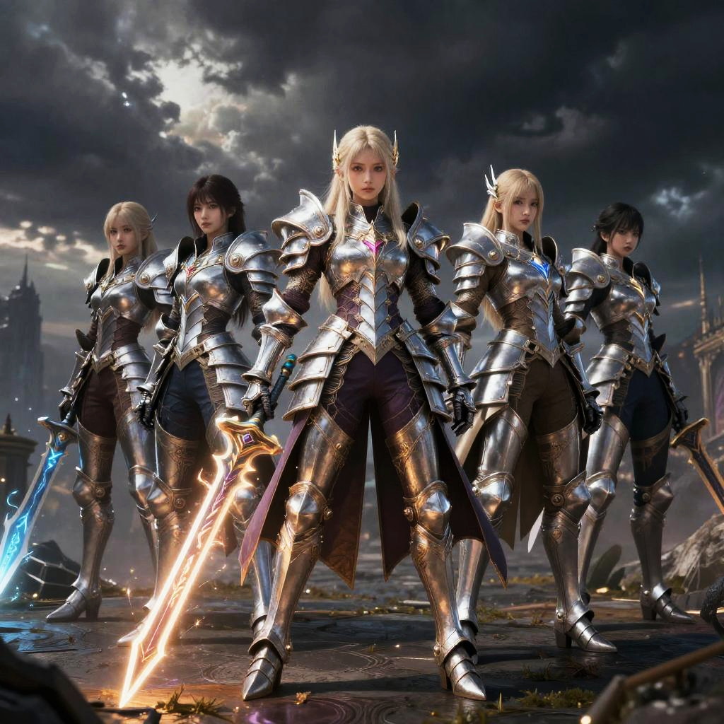 Fantasy Warriors with Glowing Armor