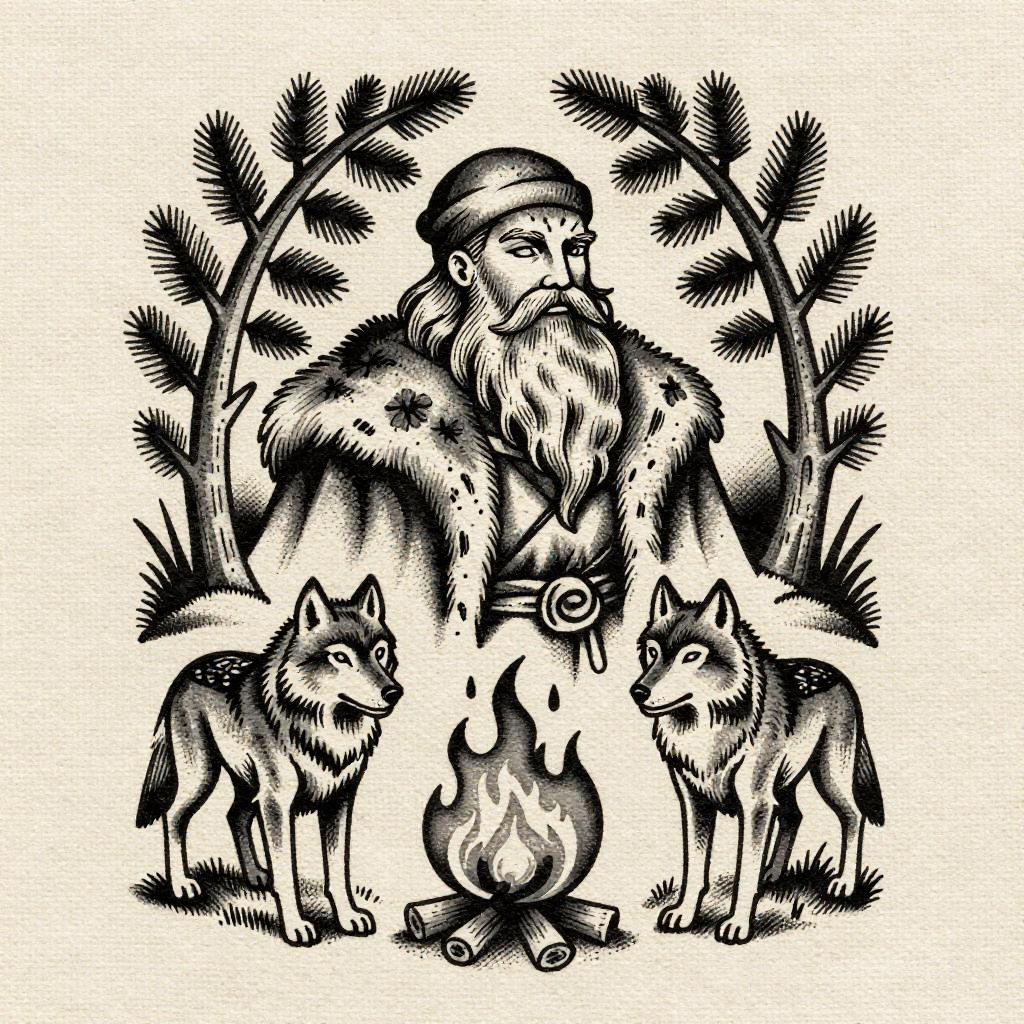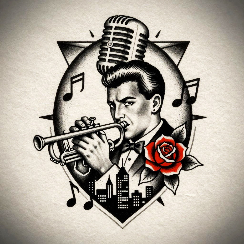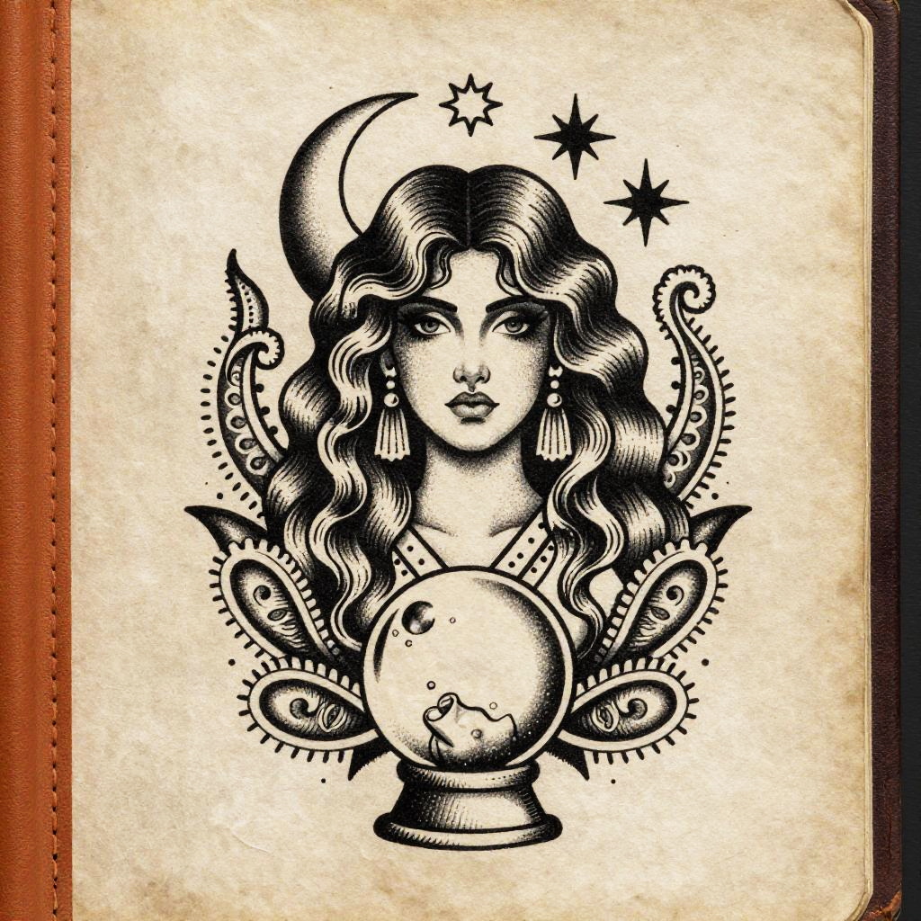 Vintage Monochrome Elderly Woman Tattoo