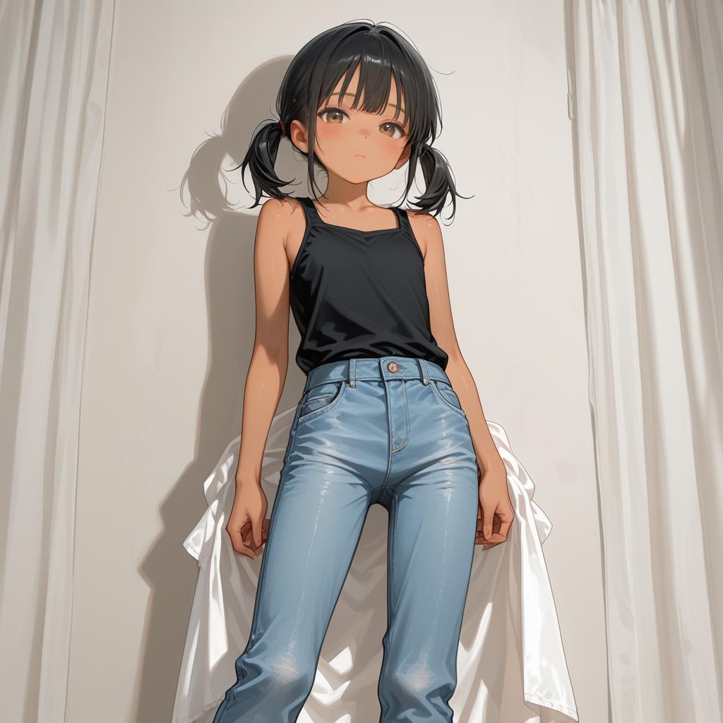 Highly detailed, High Quality, Masterpiece, beautiful, PepePunchMeme, 1girl, solo, red eyes, black hair, long hair, shirt, white shirt, shorts, short shorts, black shorts