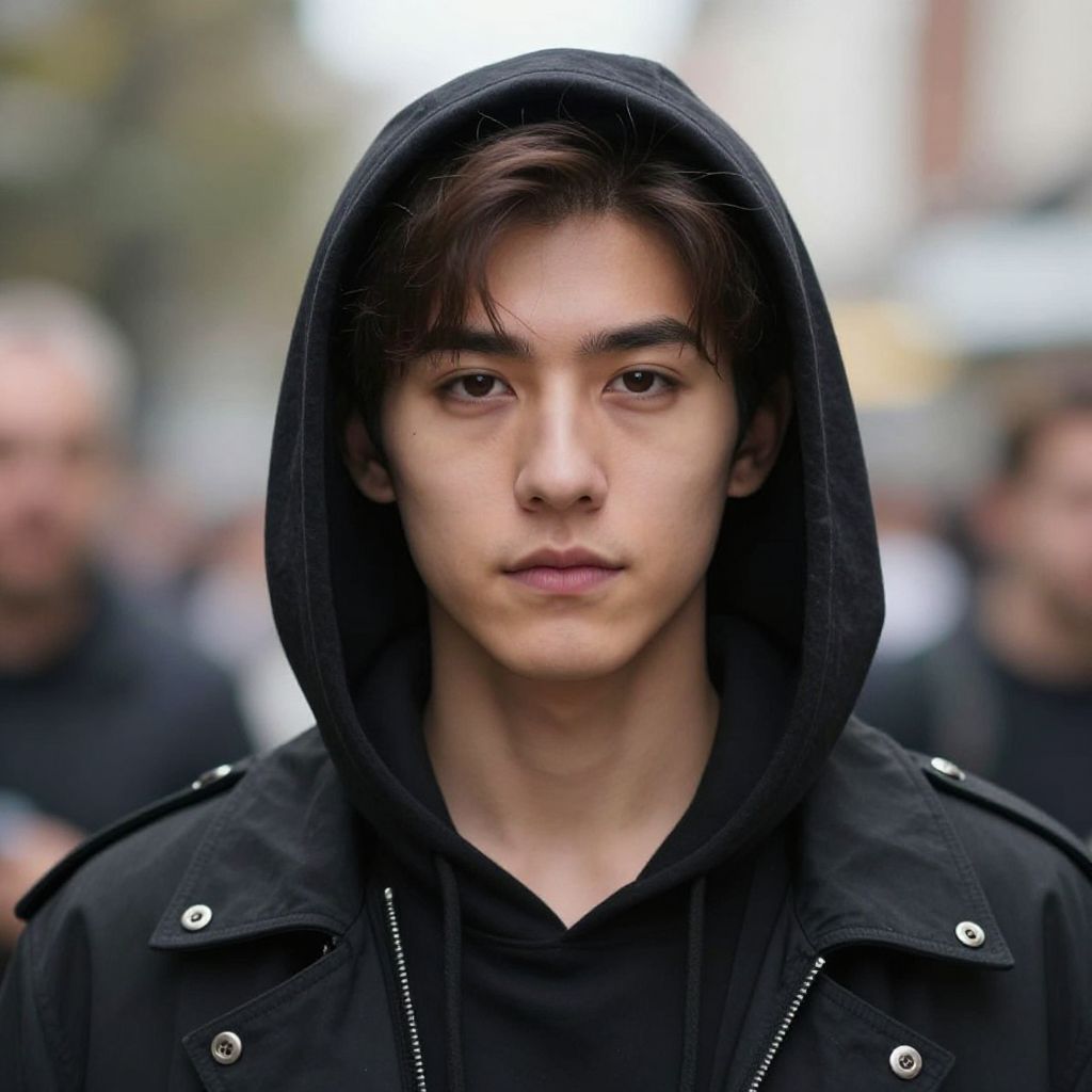Textured Bowl Cut on a fit European man, fashion portrait, urban setting, realistic hair texture, natural lighting, sharp focus, professional photography style