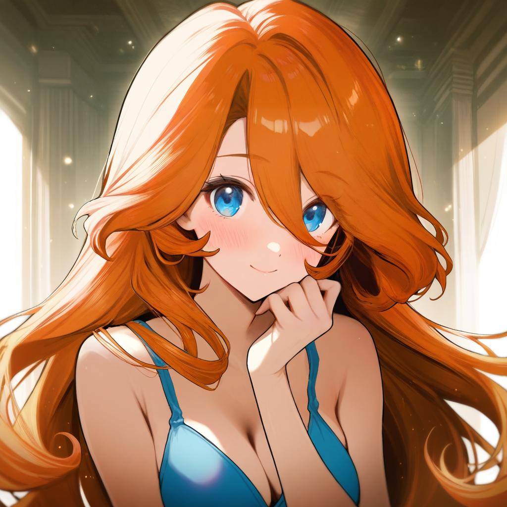 Mona (warioware), warioware, 1girl, blue eyes, long hair, orange hair, by artist kitaku (nakamachi machi), animagine