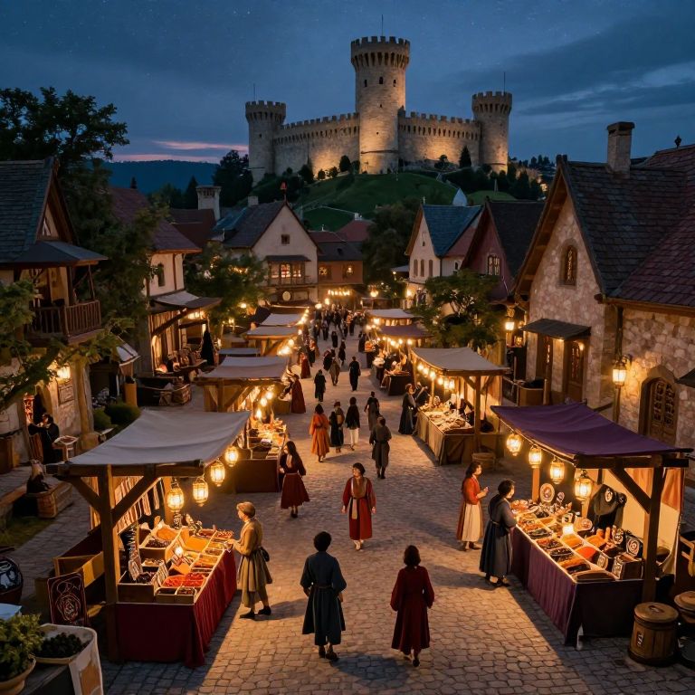 Misty Medieval Neon Marketplace