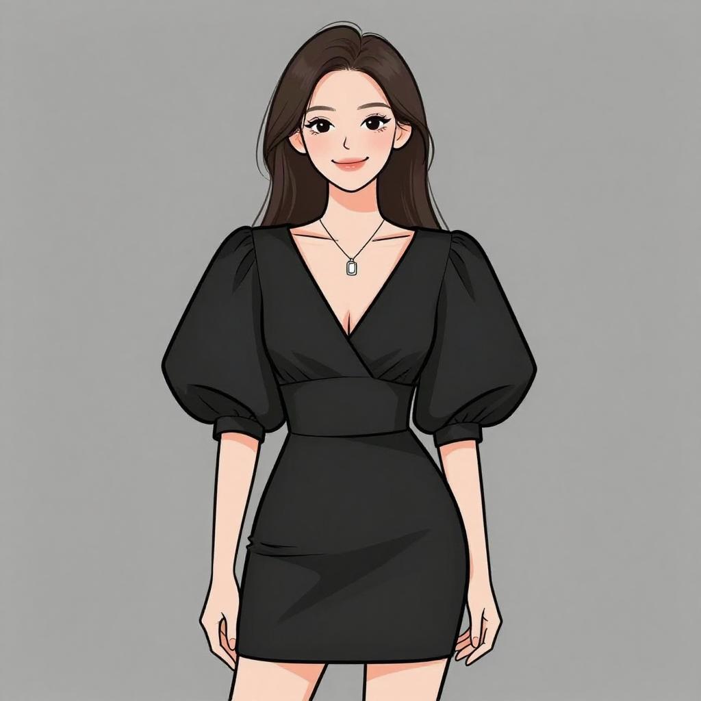 Woman with pretty face and pretty hair. smiling Woman, casual, gray oversized t-shirt dress with graphic print, round neckline, short sleeves, thigh-length, black wide-brimmed fedora hat. --sref 1467