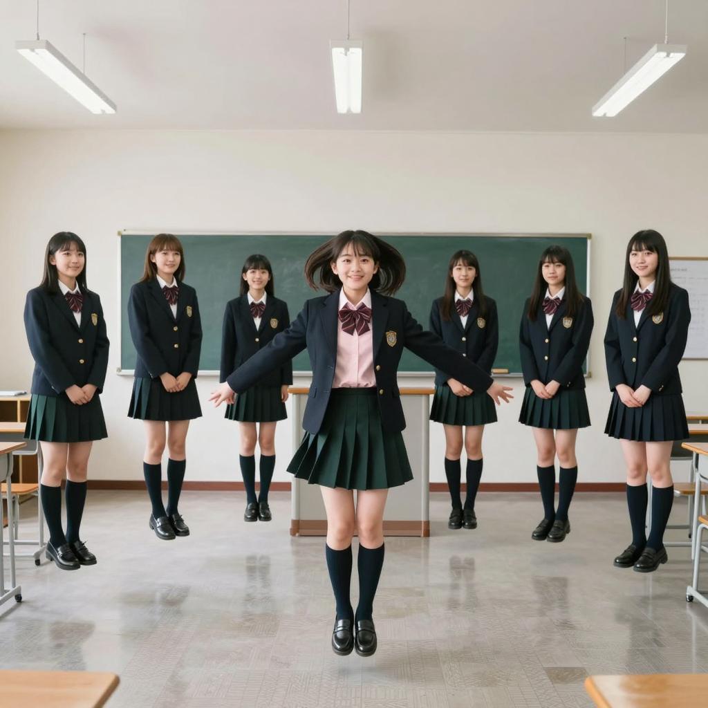 Group of Japanese schoolgirls in coats and uniforms