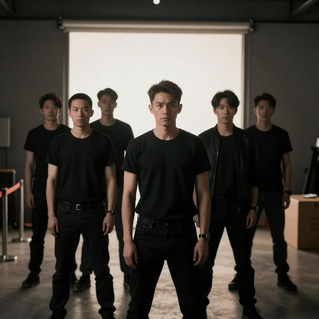 Movie poster illustration of four men in military uniforms in a green room with bunk beds. One stands, three sit or lie on bunks. Green wall, round window, blue gas cylinders. Three men look forward, one looks down.