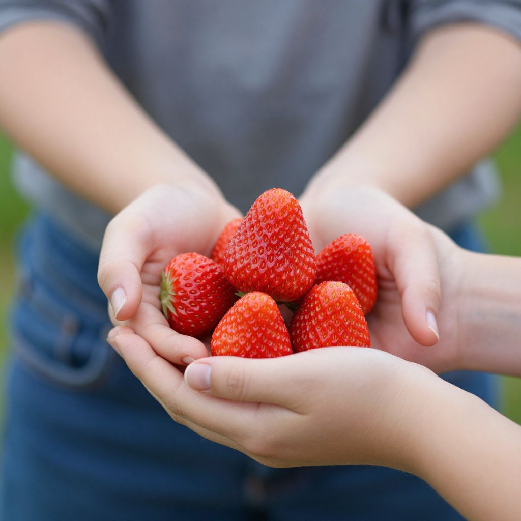 Food eat fruits strawberries woman girl people hands picked bokeh red
