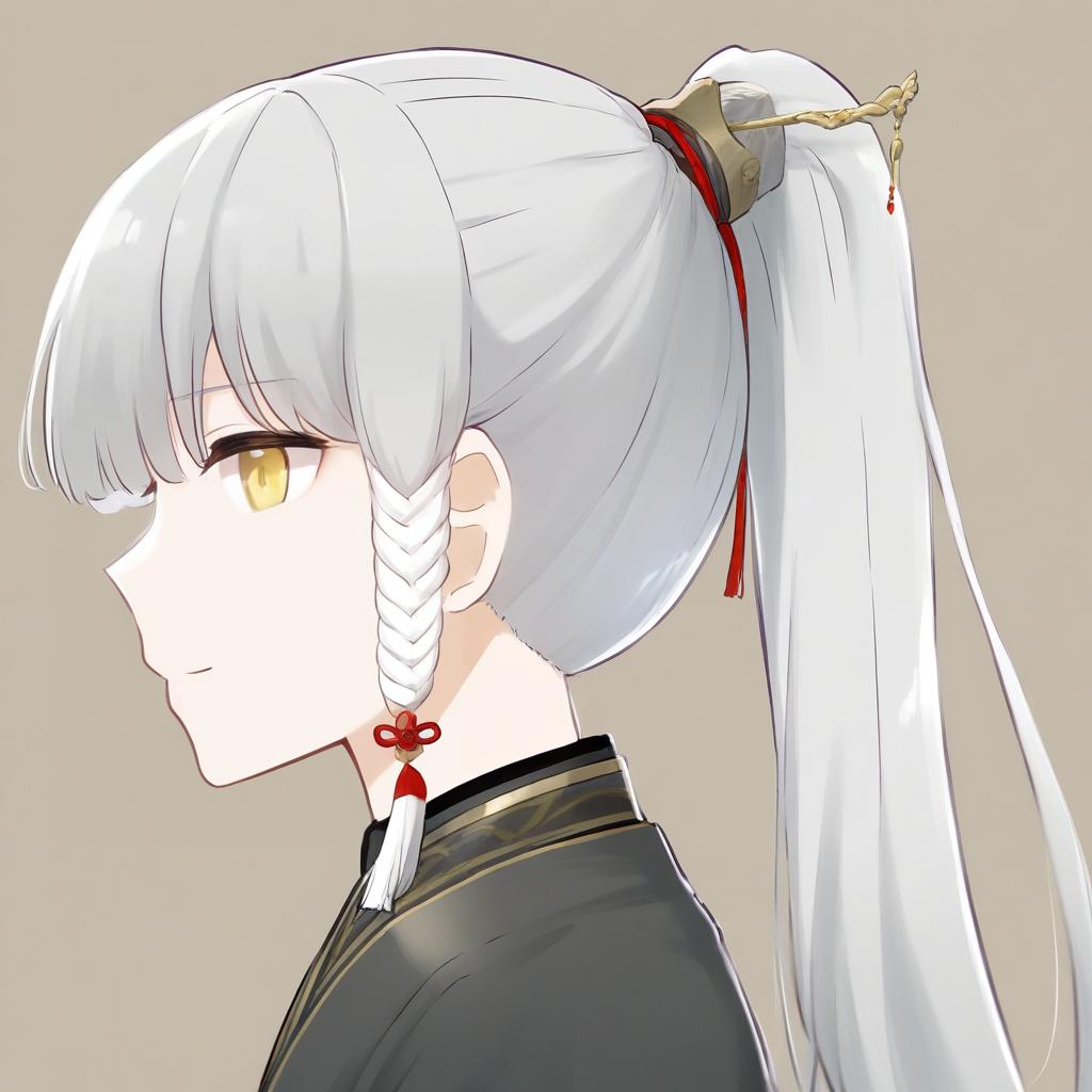 Archer (fate/samurai remnant), fate/samurai remnant, 1boy, yellow eyes, long hair, grey hair, streaked hair, white hair, tassel hair ornament, chinese hairpin, ponytail, high ponytail, sidelocks, hanfu, hanfu, by artist nagian, leet