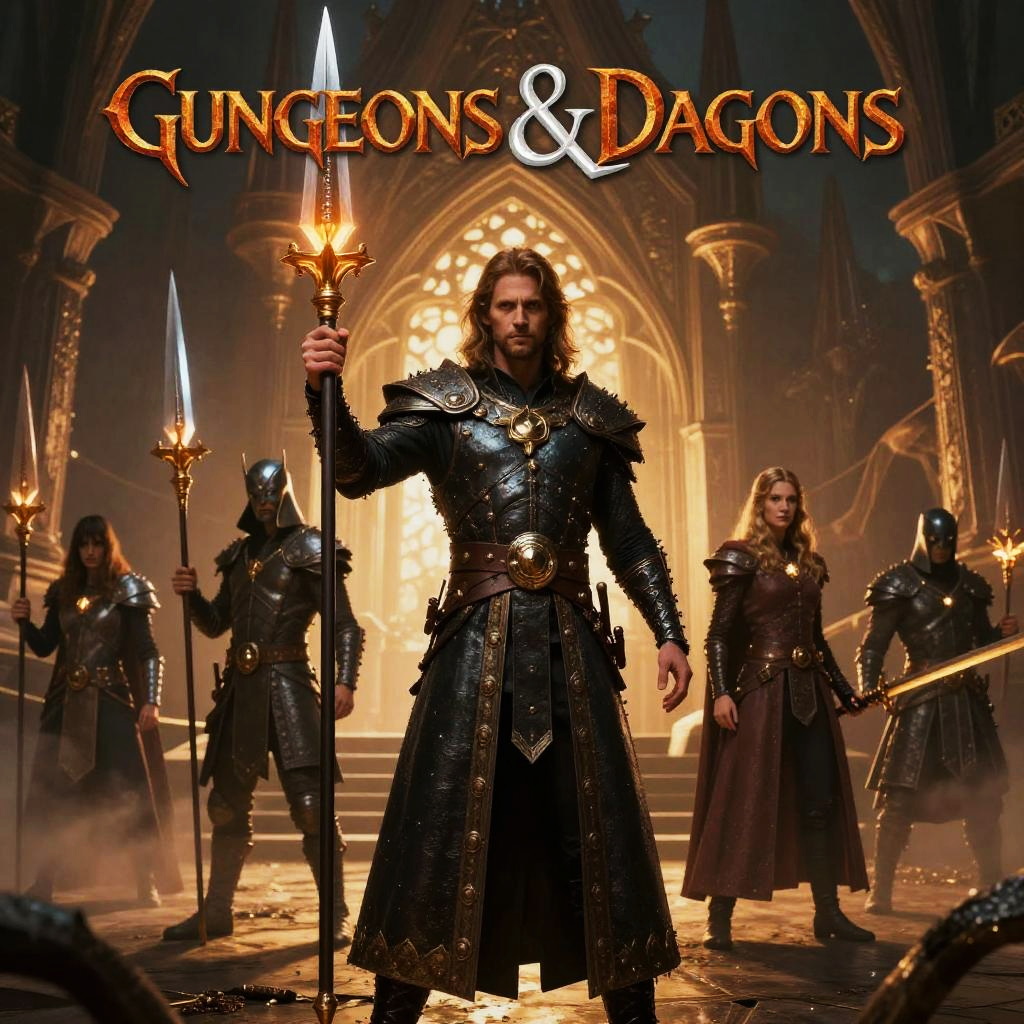 Cinematic scene, movie cover of Dungeons & Dragons, detailed background, masterpiece, best quality, high quality, highres, absurdres, vivid