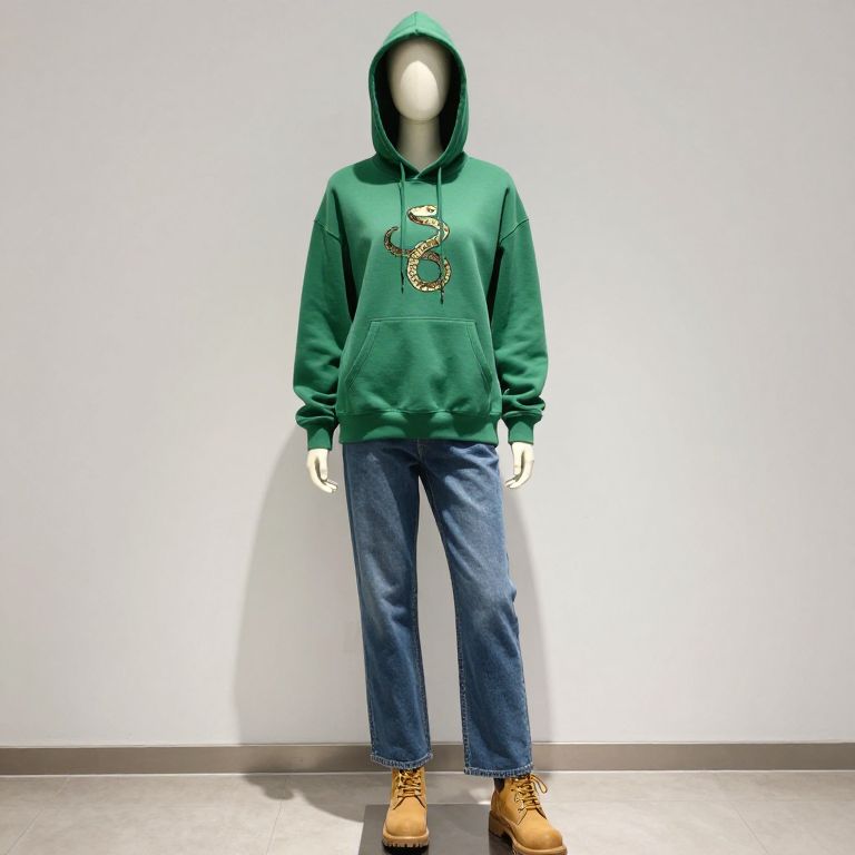 Photograph of a white mannequin dressed in a teal green, short-sleeve, loose-fitting t-shirt with a small white logo on the left chest, and bright orange, high-waisted athletic shorts. The mannequin wears an orange pumpkin-shaped baseball cap with a black stitch smile and small black eyes. The background is plain white, with bright lighting casting soft shadows. The mannequin stands centrally, displaying the casual, autumn-themed outfit. The texture of the clothing appears soft and slightly wrinkled.