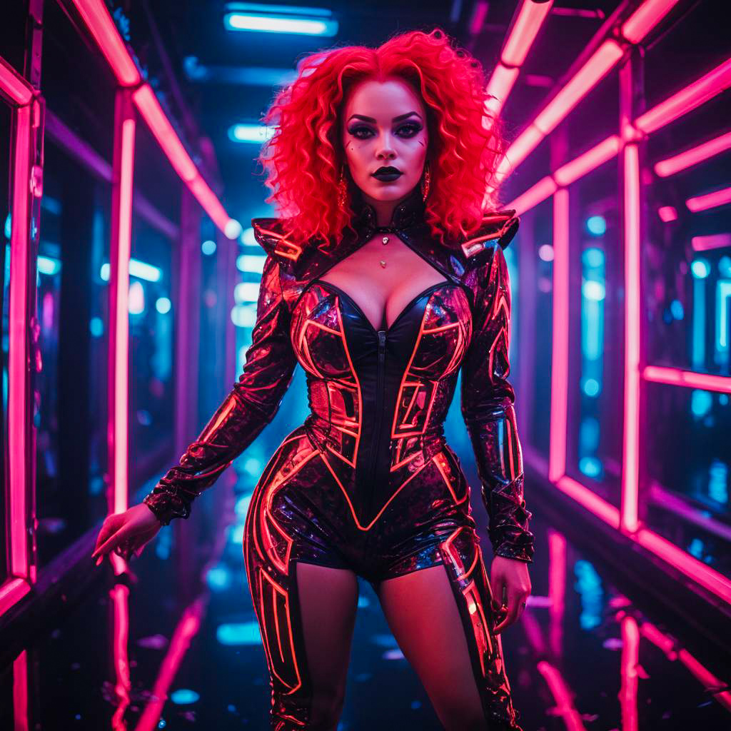 Athletic Woman in Neon Cyberpunk Fitness Outfit