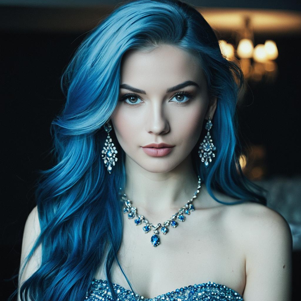 Woman with Blue Braided Hair and Jewelry