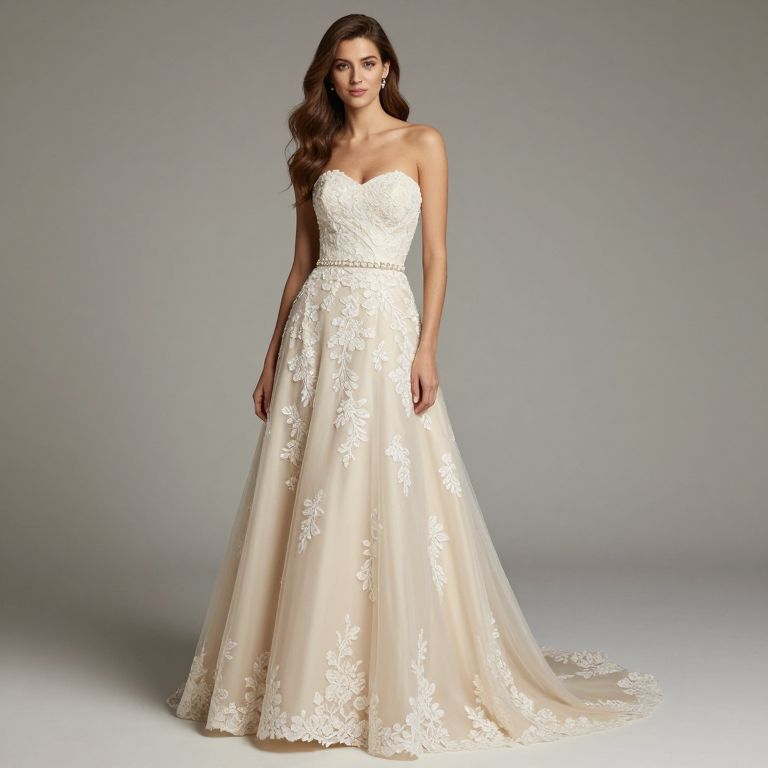Elegant Strapless Champagne Bridal Dress