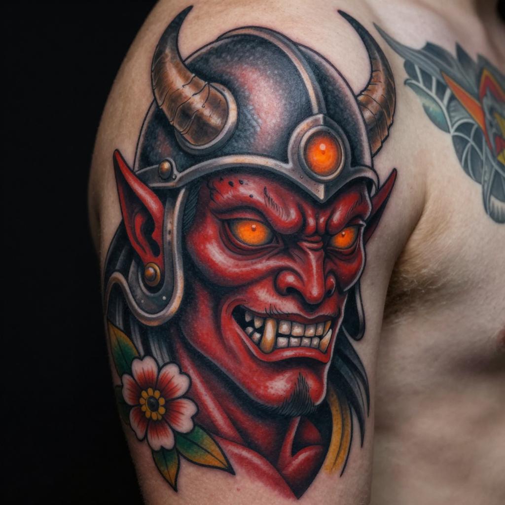 Intricate Samurai Helmet Tattoo Design