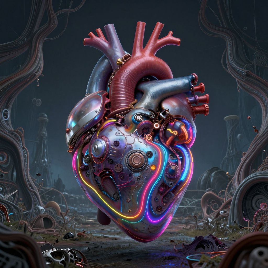 Surreal Mechanical Heart in Neon