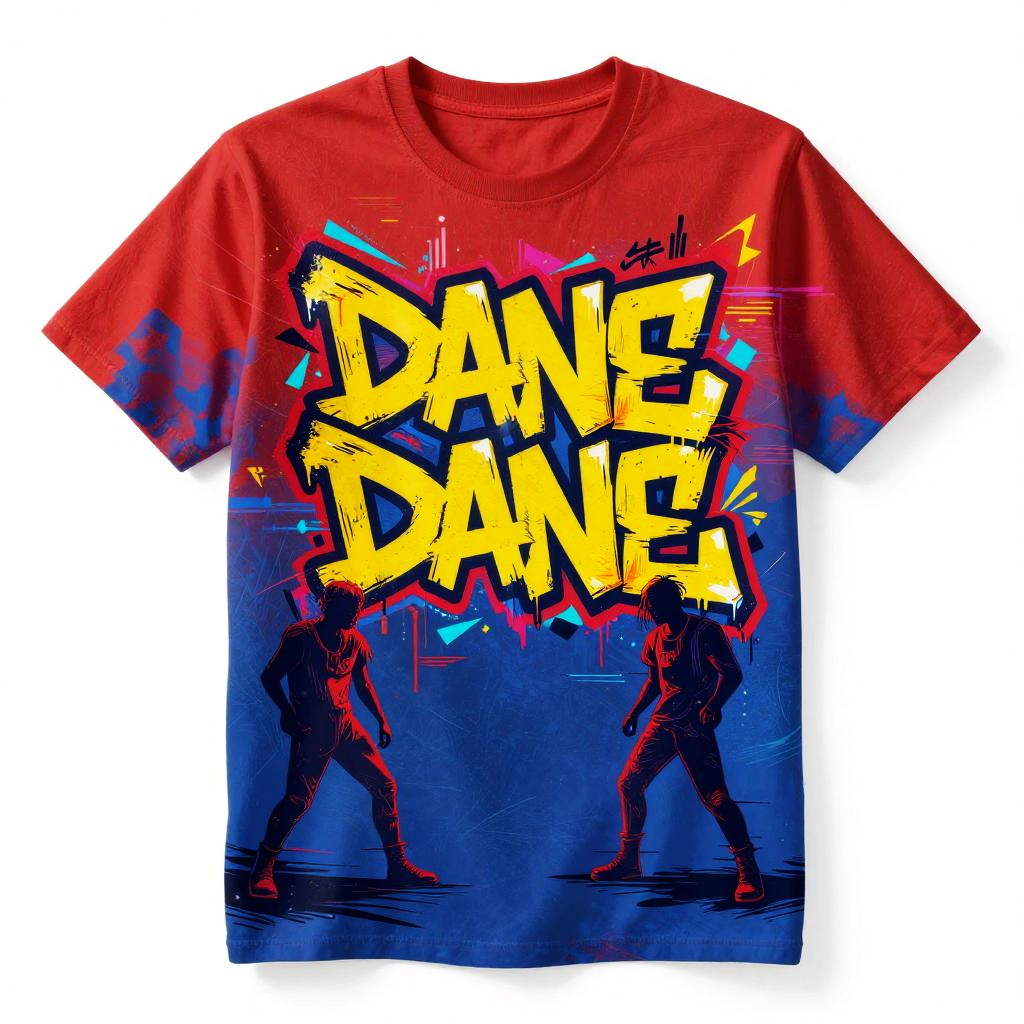 T shirt design generator AI crafting bold graffiti-style artwork with vivid reds, yellows, and blues, infused with digital glitch effects and cyberpunk aesthetics, energetic and edgy compositions designed for urban youth culture, high contrast, expressive strokes