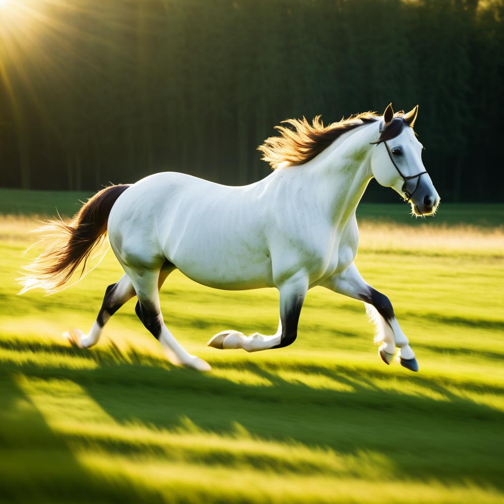 Graceful White Horse Running in Sunlit Field