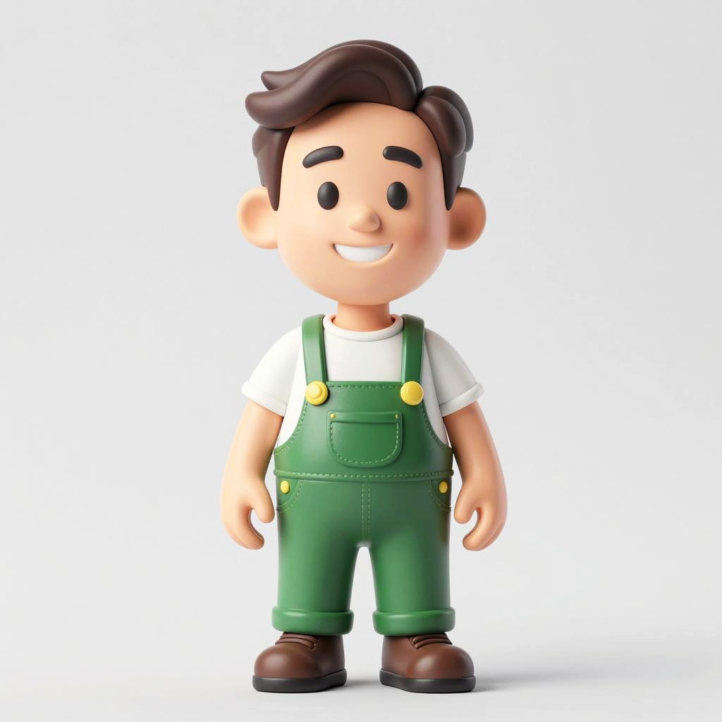 This full-body shot showcases a caricature figurine influenced by the distinct style of Mort Drucker, known for his exaggerated yet likable representations. The figurine features a muscular man with a charming smile, striking a confident pose.