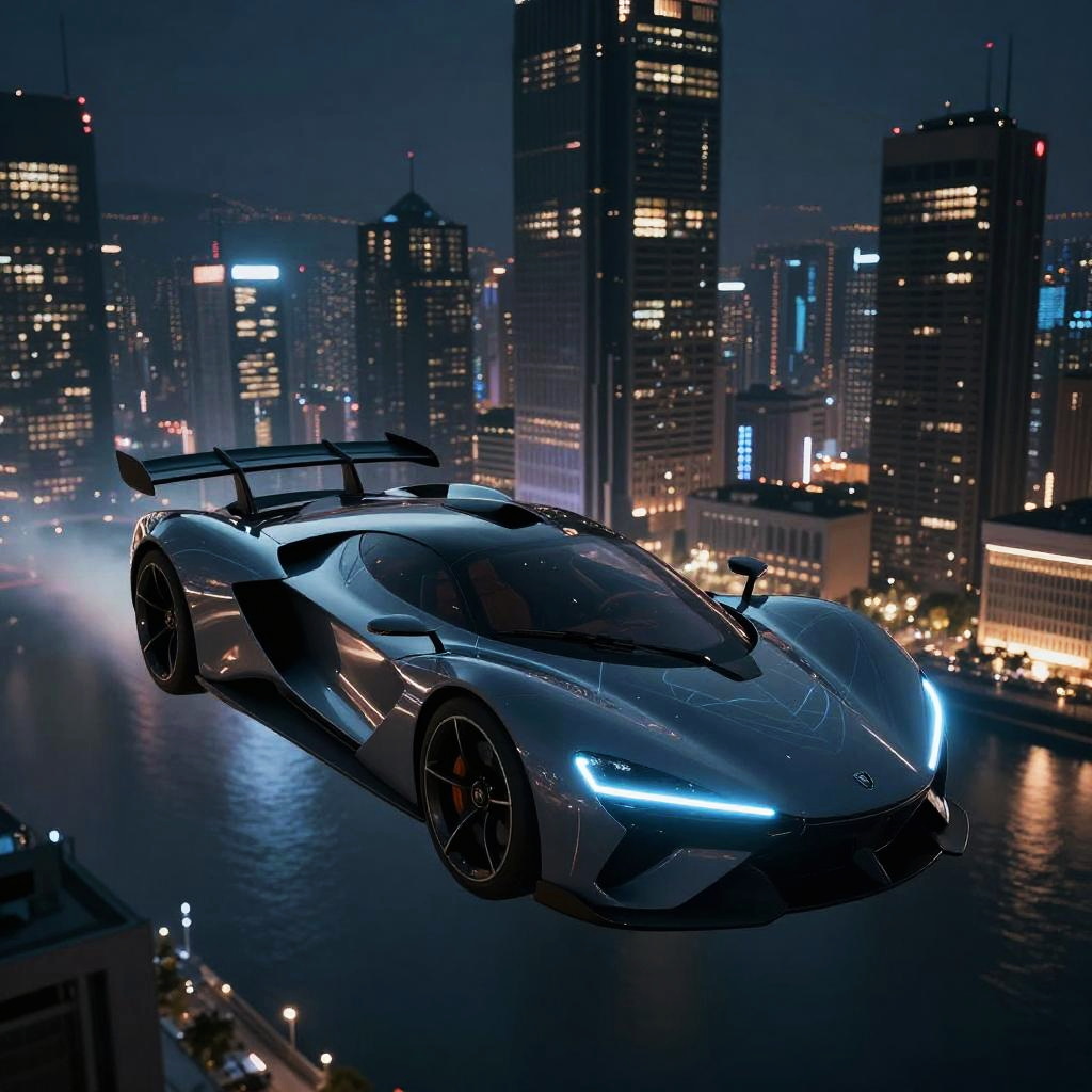 Futuristic Flying Car Over City