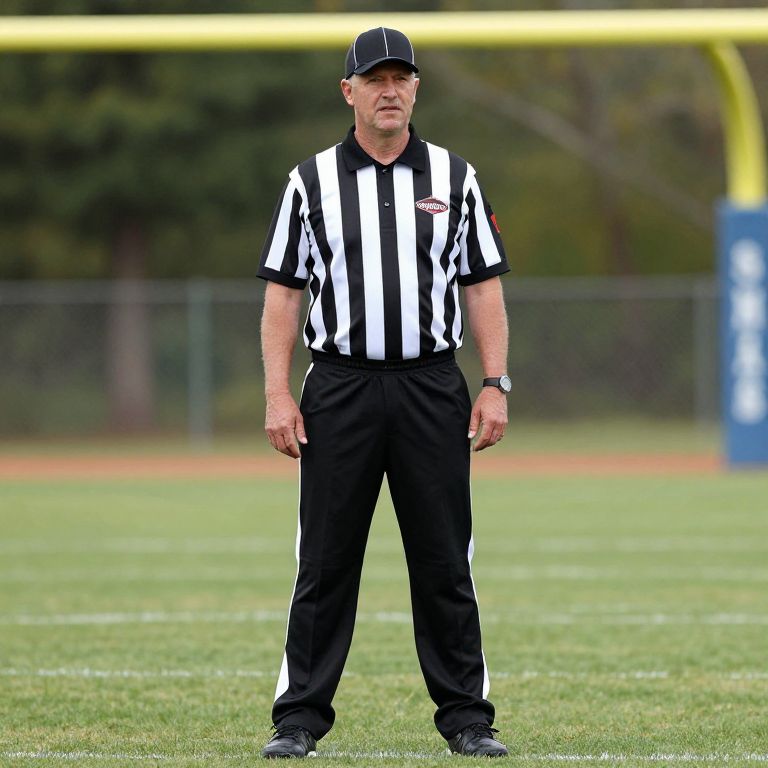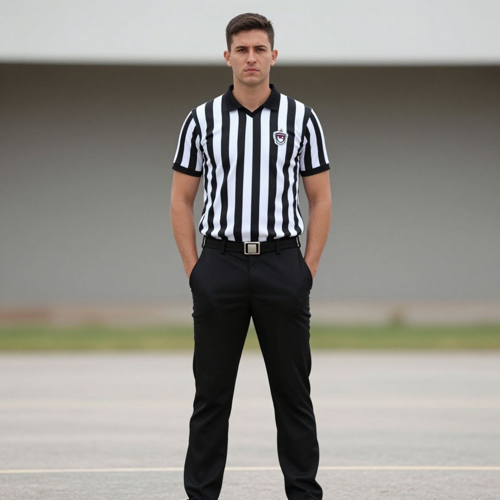 "Smittys Referee Gear, football referee in black and white uniform standing on field"