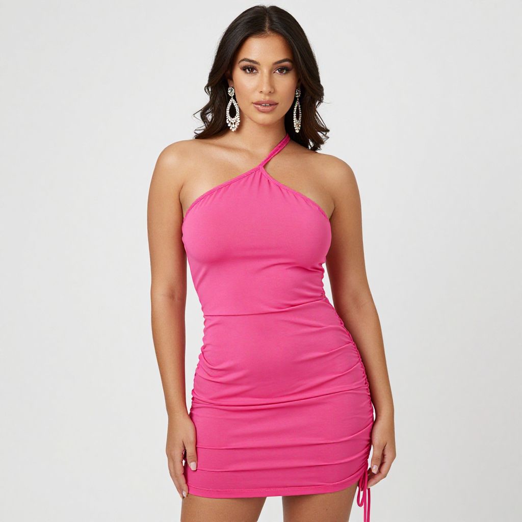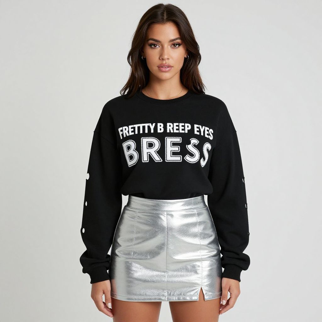 "Woman, casual, light pink graphic t-shirt with text, round neckline, short sleeves, light blue distressed skinny jeans, mid-rise waist.. Sexy. Pretty face and beаutiful eyes. Big breasts."