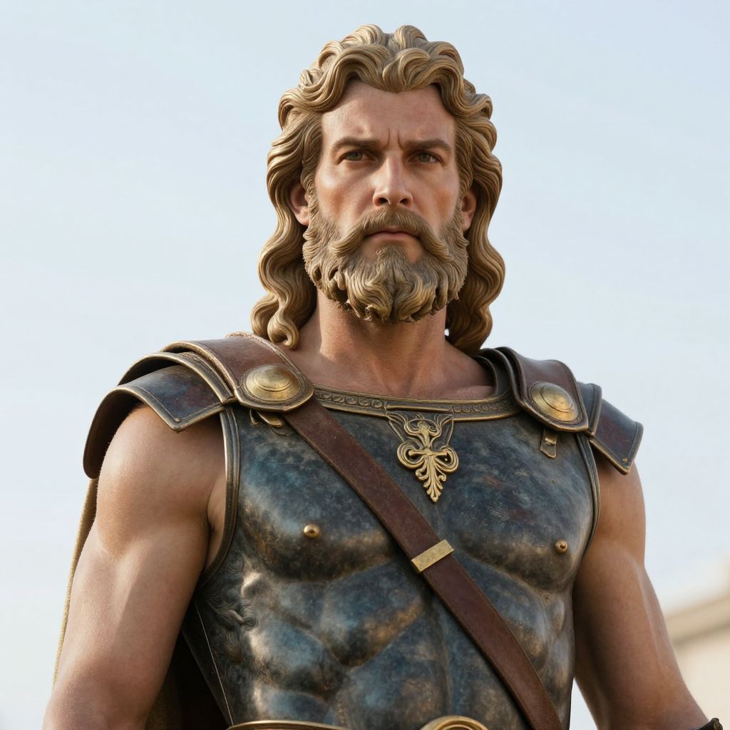 Greek god zeus costume, a close up of a statue of a man with a beard