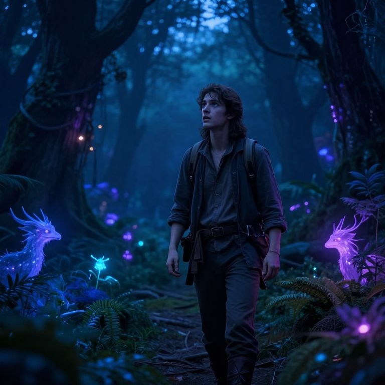 Friends Exploring Cyberpunk Bioluminescent Forest
