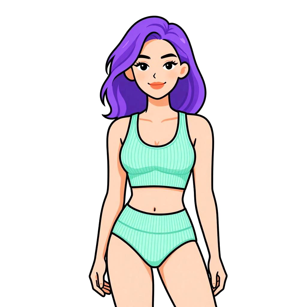 Woman with pretty face and pretty hair. Woman, athleisure, olive green crop top with short sleeves, round neckline, matching high-waisted leggings, body-hugging fit, small logo on the chest, plain design, white background. --sref 1467