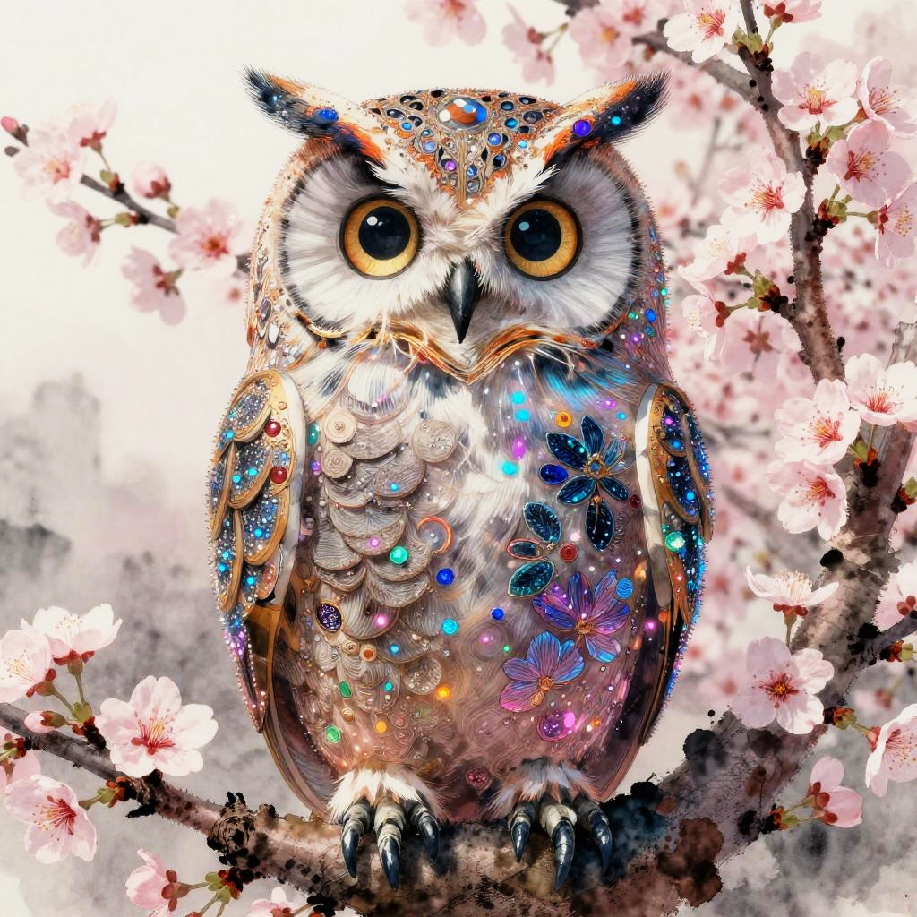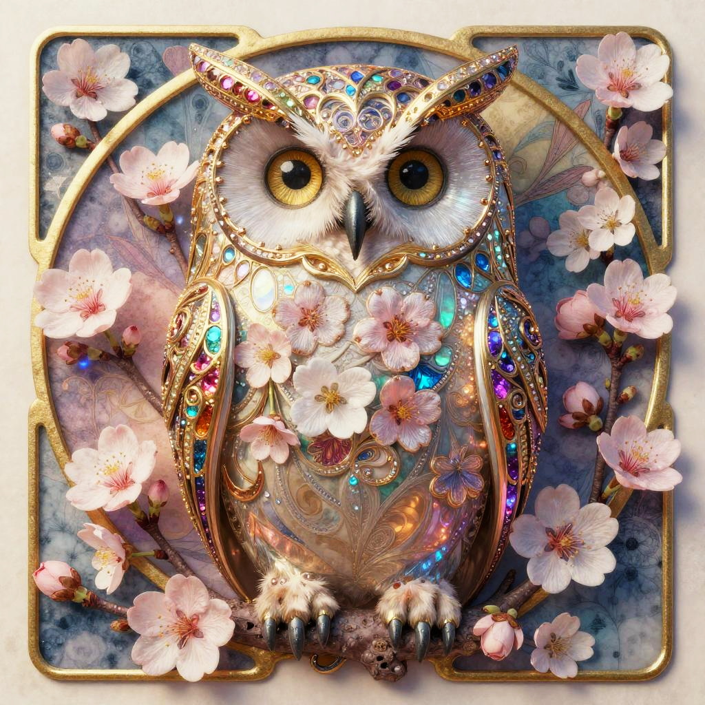 Mythic Klimt Cherry Blossom Owl
