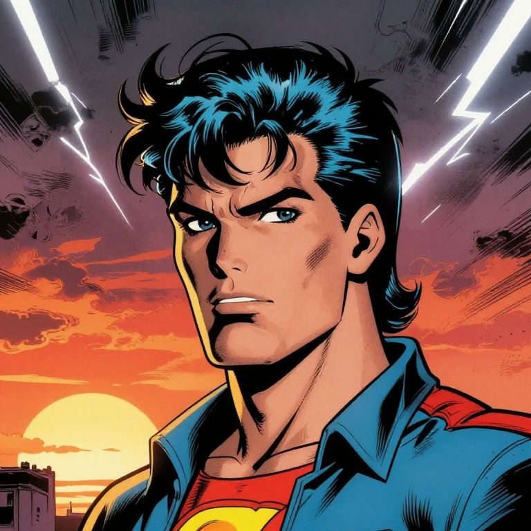 1980s comic books page with a dramatic showdown between heroes and villains, intense facial expressions, vivid primary colors, dotted shading textures, and explosive backgrounds