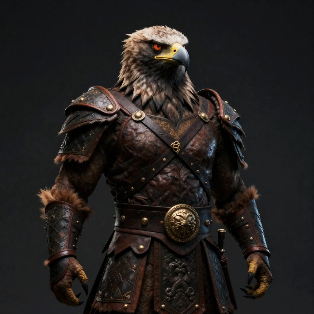 Anthropomorphic Eagle Warrior in Detailed Armor
