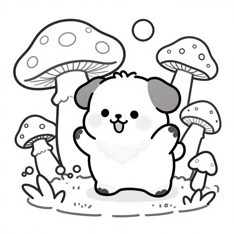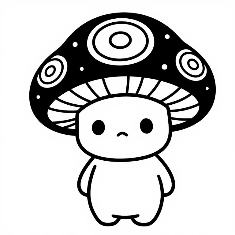 Chibi Mushroom Psychedelic Line Art