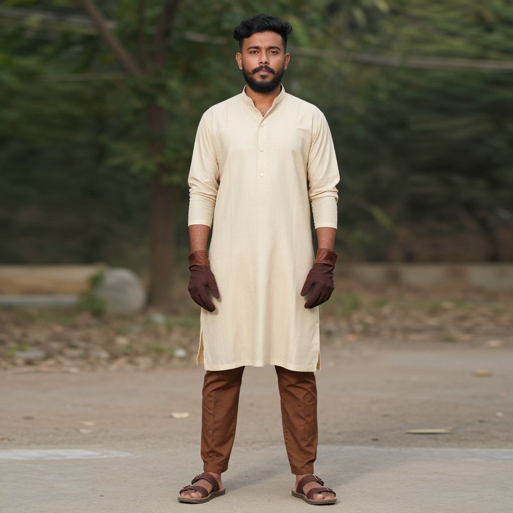 "mashramani costume, 1boy, beard, male focus, solo, facial hair, black hair, sandals, dark-skinned male, dark skin, gloves, full body, standing, looking at viewer, brown gloves, mustache Realistic photo of casual sexy person with pretty face"