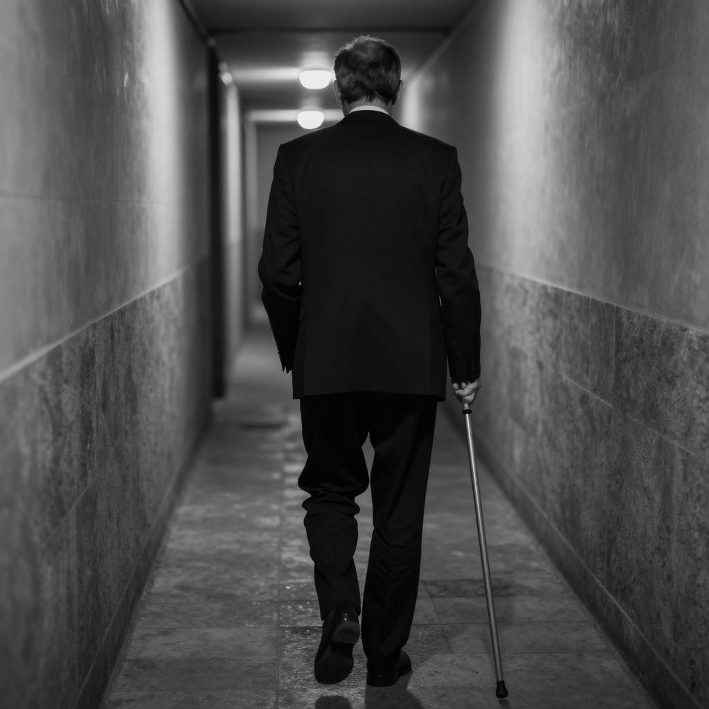 Man in Suit Facing Red Curtain